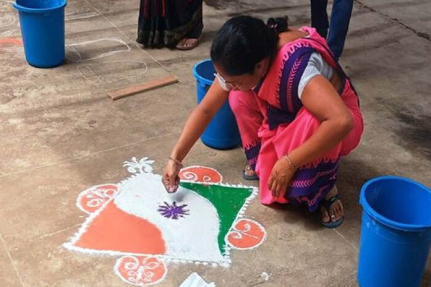 बहनों ने रंगोली बनाकर दिया हर घर तिरंगा अभियान का संदेश